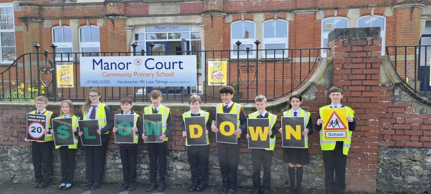 There has been a school on the site of Manor Court Community Primary School for over one hundred years and we have a varied and rich history. We are located centrally to Chard, in a prime position, next to the large Parish Church of St Mary's.